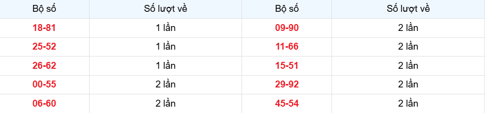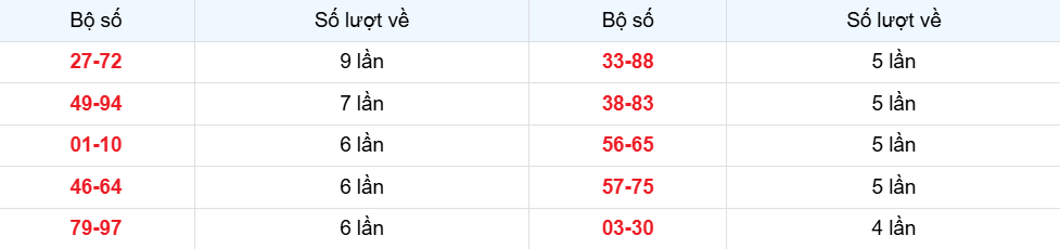 Các cặp lô về nhiều nhất từ 26-10-2025 đến 01-11-2025