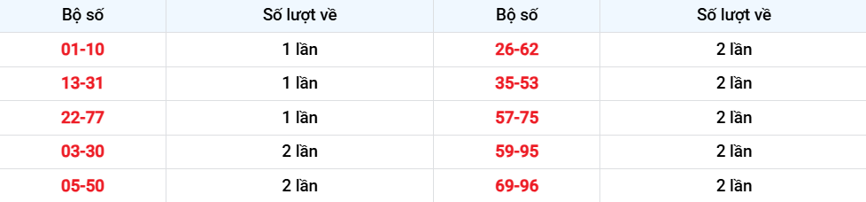 Các cặp lô về ít nhất từ 25-11-2025 đến 01-11-2025