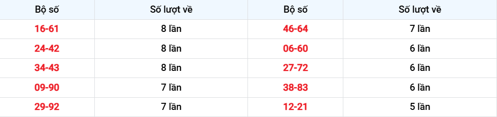 – Đuôi loto về nhiều nhất: 2 + 4 (xuất hiện 45 lần)