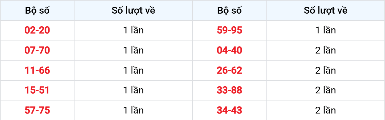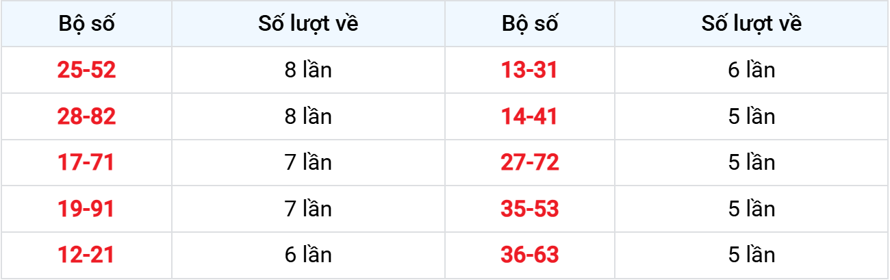 Các cặp lô về ít nhất từ 27-12-2025 đến 02-01-2026