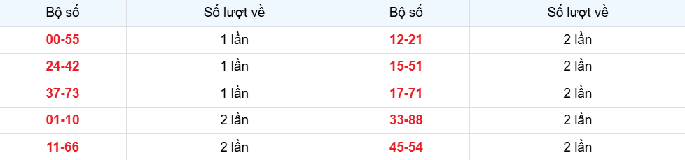 Các cặp lô về ít nhất từ 27-09-2025 đến 03-10-2025