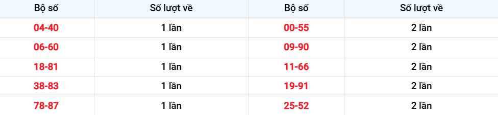 Các cặp lô về ít nhất từ 28-10-2025 đến 03-11-2025
