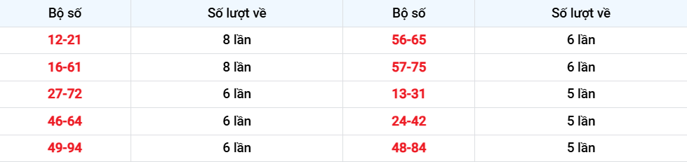 Các cặp lô về nhiều nhất từ 28-10-2025 đến 03-11-2025