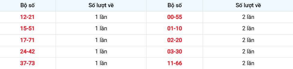 Các cặp lô về ít nhất từ 28-09-2025 đến 04-10-2025