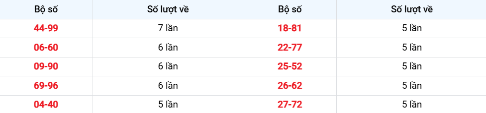 – Đuôi loto về nhiều nhất: 4 + 5 (xuất hiện 5 lần)