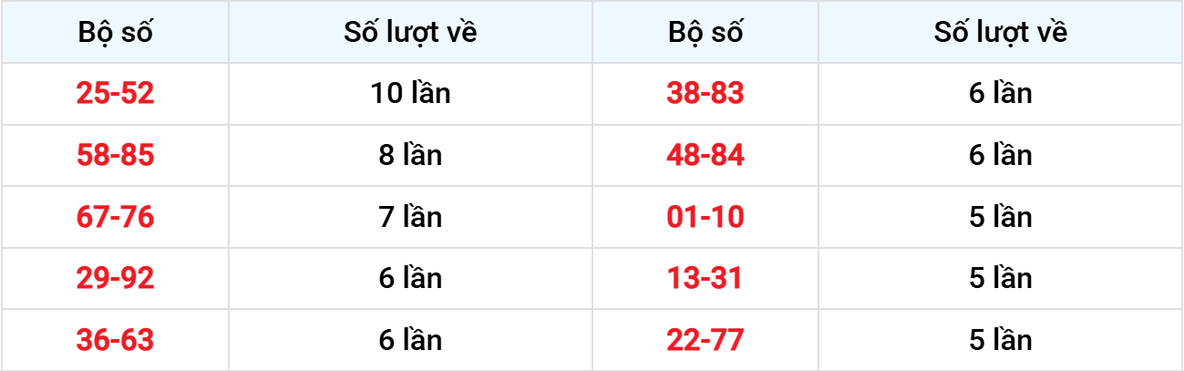 Các cặp lô về nhiều nhất từ 31-12-2025 đến 06-01-2026
