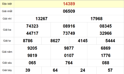 – Giải đặc biệt: 89
