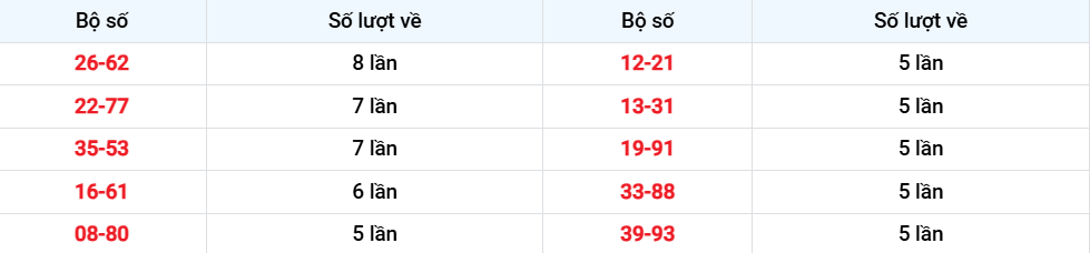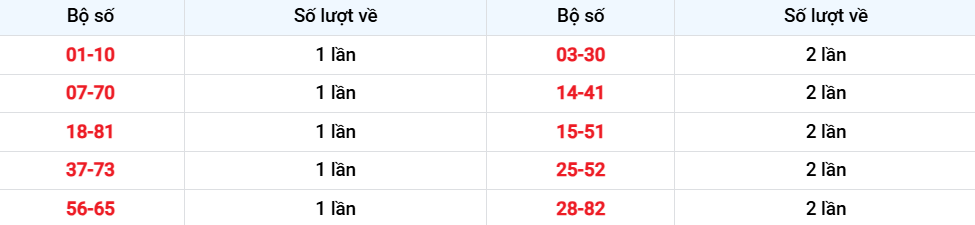 Các cặp lô về ít nhất từ 01-11-2025 đến 07-11-2025