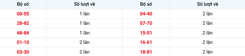 Các cặp lô về ít nhất từ 02-11-2025 đến 08-11-2025