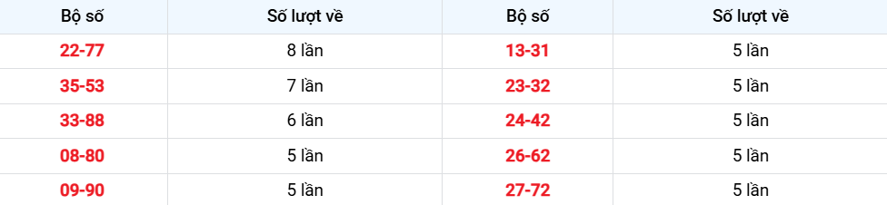 – Cặp lô về cùng nhau: 03-30, 14-41, 19-91, 25-52, 38-83