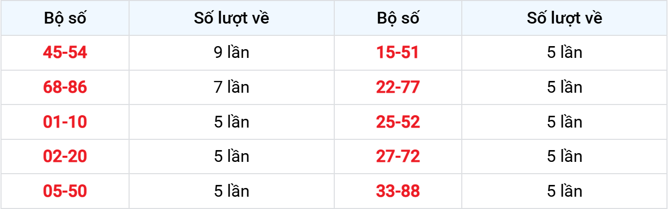 Các cặp lô về nhiều nhất từ 03-01-2026 đến 09-01-2026