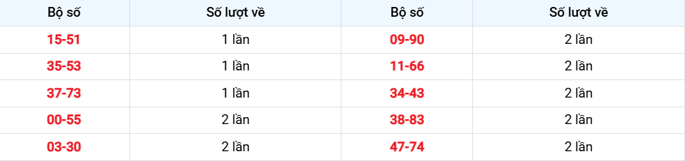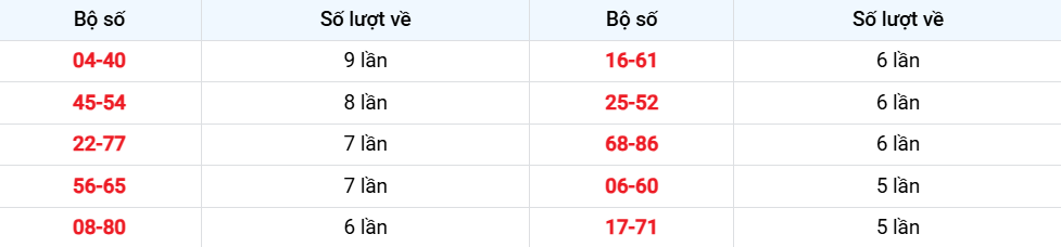 Các cặp lô về ít nhất từ 03-10-2025 đến 09-10-2025
