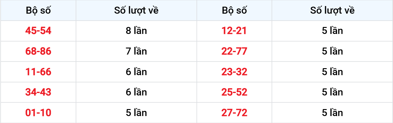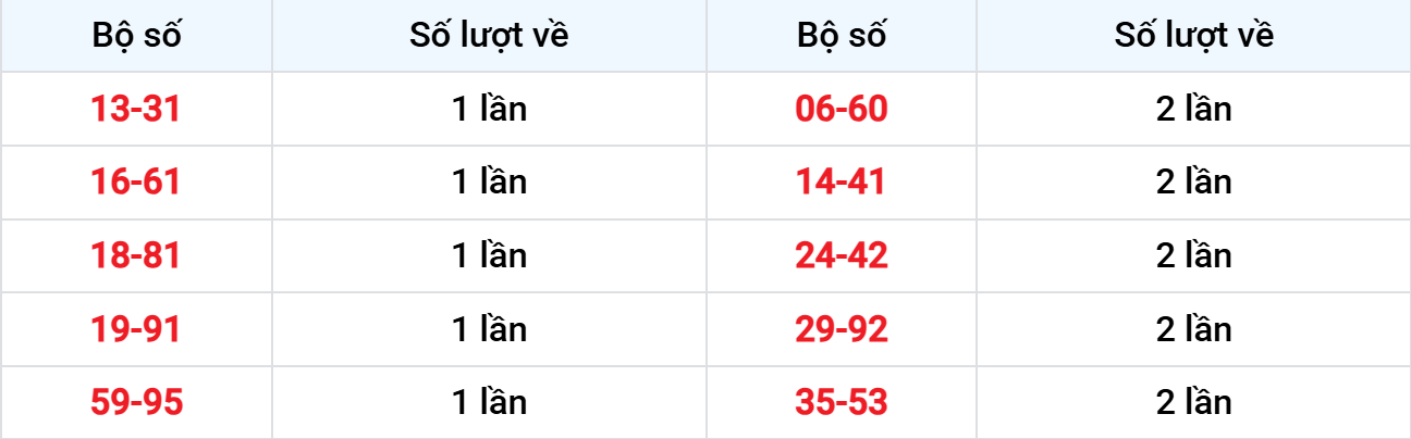 – Cặp lô về cùng nhau: 12-21, 13-31, 45-54, 78-87