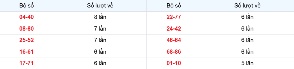 Các cặp lô về ít nhất từ 04-10-2025 đến 10-10-2025