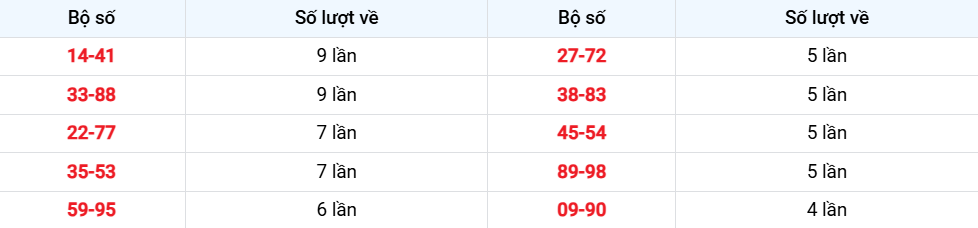 Các cặp lô về nhiều nhất từ 05-11-2025 đến 11-11-2025