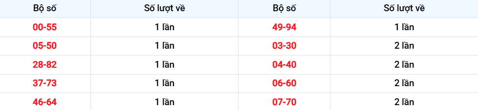 Các cặp lô về ít nhất từ 06-11-2025 đến 12-11-2025