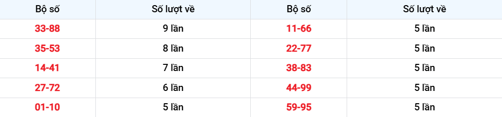 Các cặp lô về nhiều nhất từ 06-11-2025 đến 12-11-2025