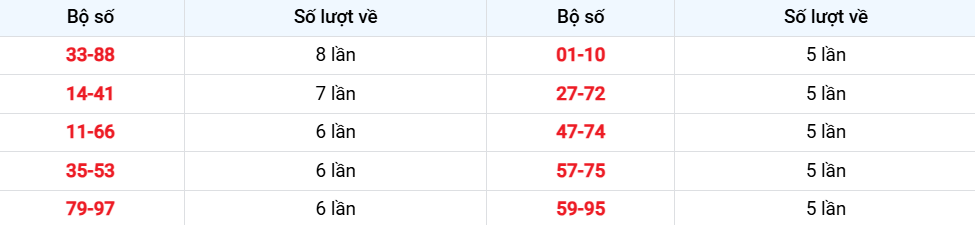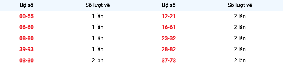 Các cặp lô về ít nhất từ 07-11-2025 đến 13-11-2025