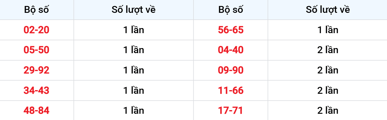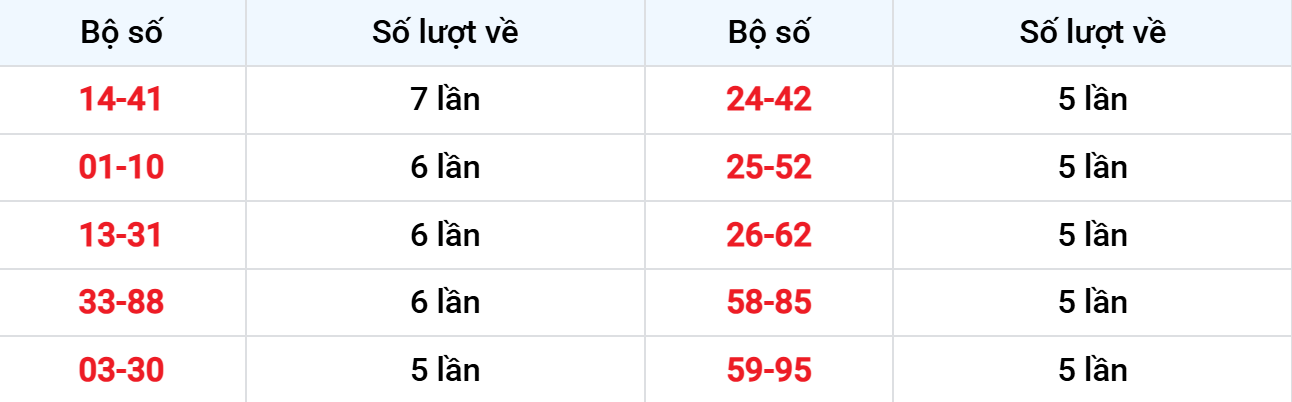 Các cặp lô về ít nhất từ 09-12-2025 đến 15-12-2025