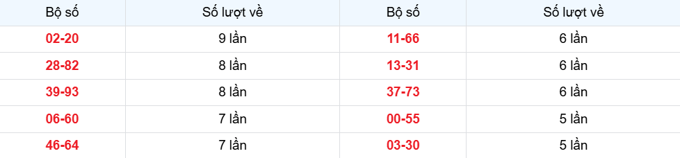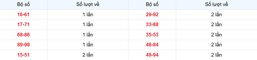 Các cặp lô về ít nhất từ 11-10-2025 đến 17-10-2025