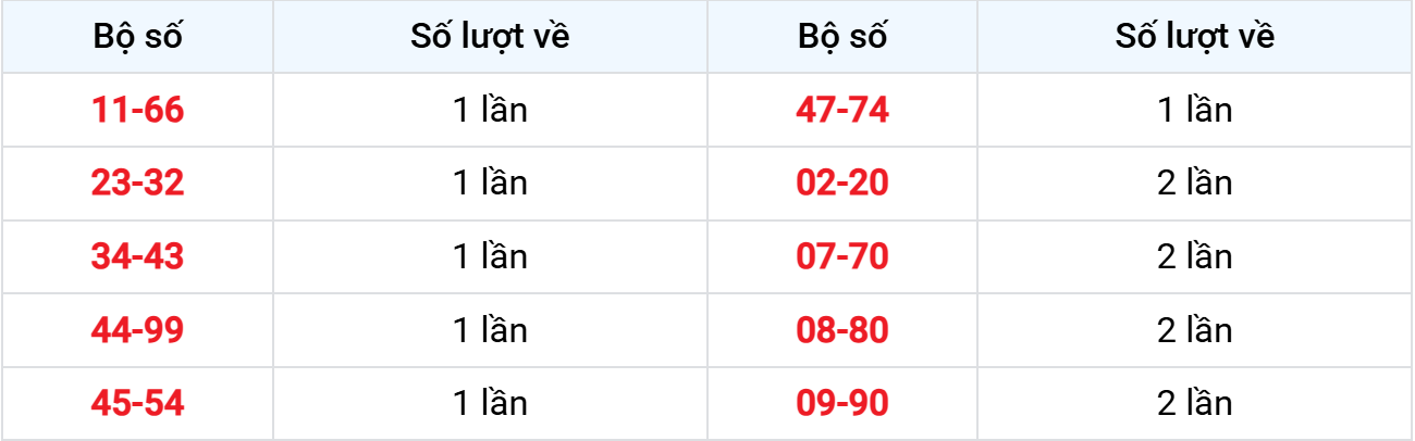 Cặp lô về cùng nhau: 01-10, 27-72, 79-97