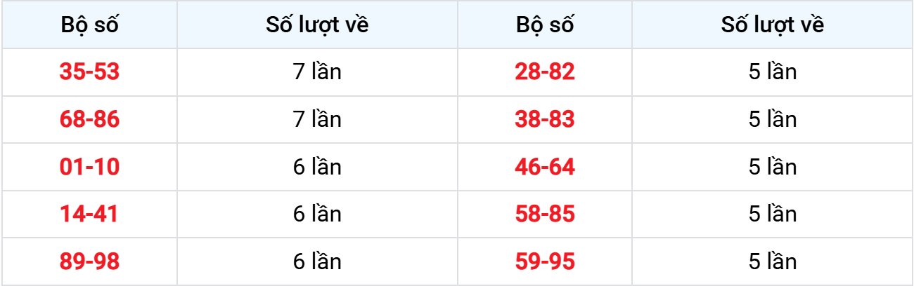 Các cặp lô về nhiều nhất từ 13-12-2025 đến 19-12-2025