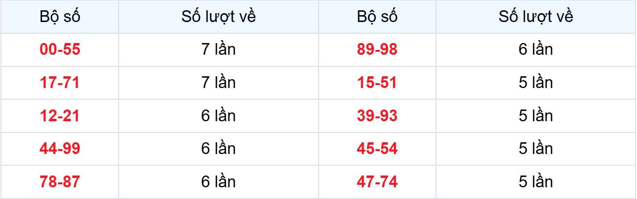 – Đuôi loto về nhiều nhất: 2 + 9 (xuất hiện 5 lần)