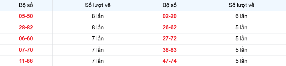 Các cặp lô về ít nhất từ 14-10-2025 đến 20-10-2025
