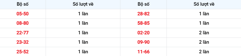 Các cặp lô về ít nhất từ 14-11-2025 đến 20-11-2025