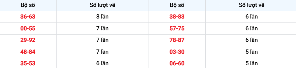 Các cặp lô về nhiều nhất từ 14-11-2025 đến 20-11-2025
