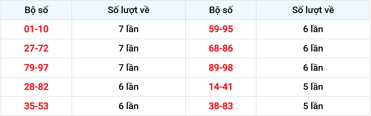 Các cặp lô về nhiều nhất từ 14-12-2025 đến 20-12-2025