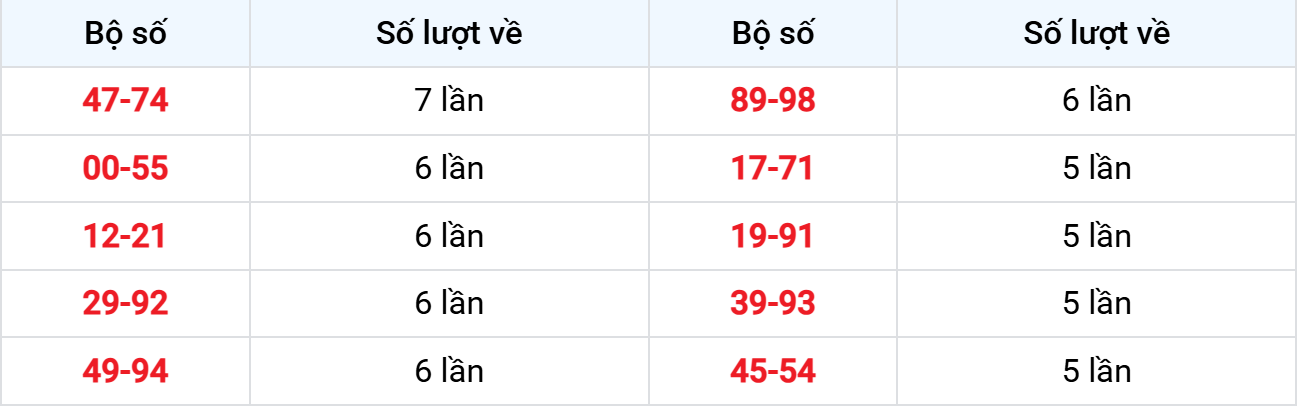 – Lô kép xuất hiện: 44