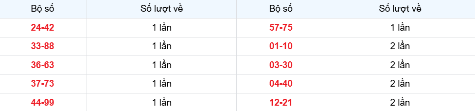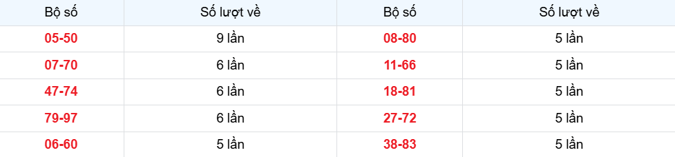 Các cặp lô về ít nhất từ 17-10-2025 đến 23-10-2025