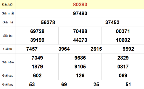 – Giải đặc biệt: 83