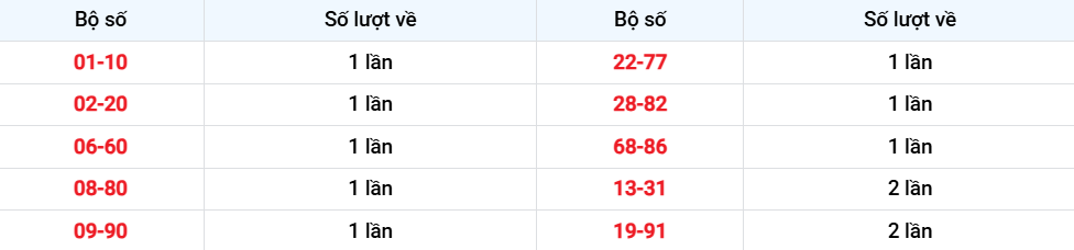 Các cặp lô về ít nhất từ 17-11-2025 đến 23-11-2025
