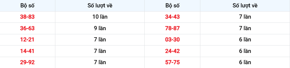 Các cặp lô về nhiều nhất từ 17-11-2025 đến 23-11-2025