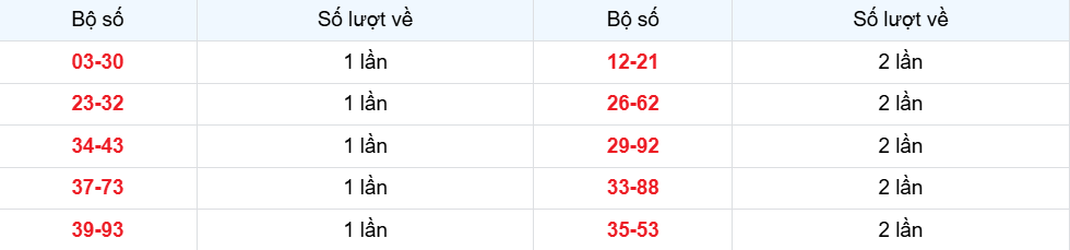Các cặp lô về ít nhất từ 19-10-2025 đến 25-10-2025