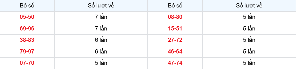Các cặp lô về nhiều nhất từ 19-10-2025 đến 25-10-2025