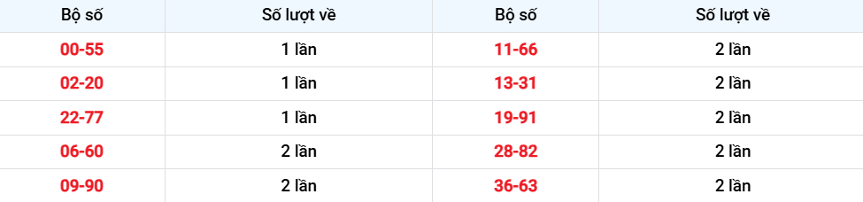 Các cặp lô về ít nhất từ 19-11-2025 đến 25-11-2025