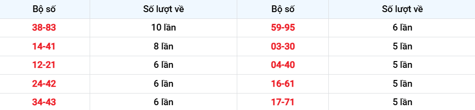 Các cặp lô về nhiều nhất từ 19-11-2025 đến 25-11-2025