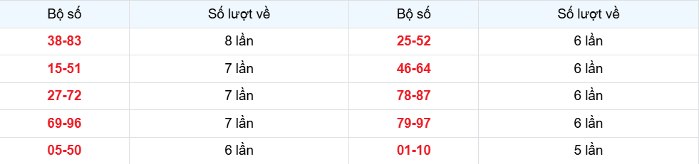 Các cặp lô về ít nhất từ 20-10-2025 đến 26-10-2025