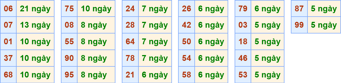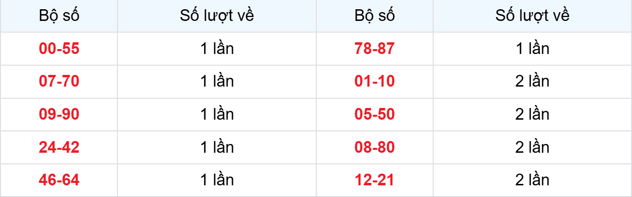 Các cặp lô về ít nhất từ 21-01-2026 đến 27-01-2026