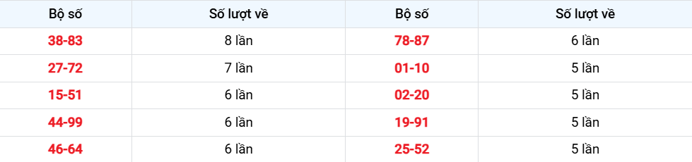 Các cặp lô về nhiều nhất từ 22-10-2025 đến 28-10-2025