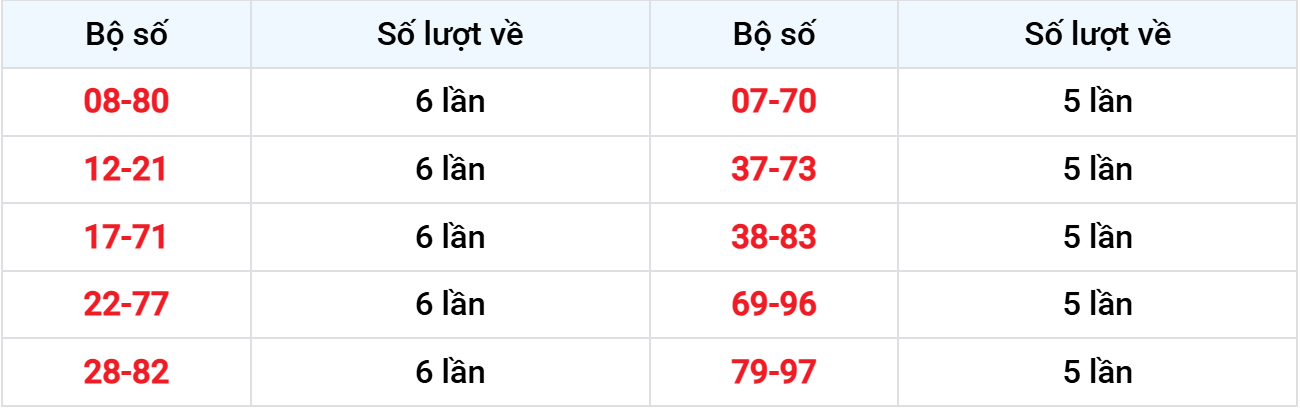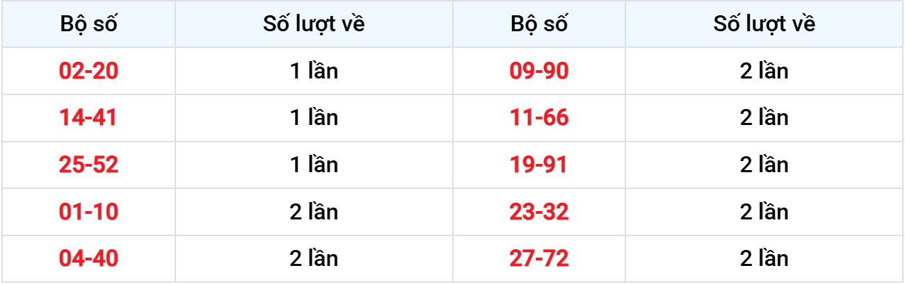Các cặp lô về ít nhất từ 22-12-2025 đến 28-12-2025