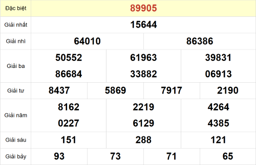 – Giải đặc biệt: 05