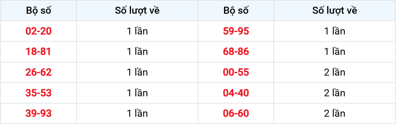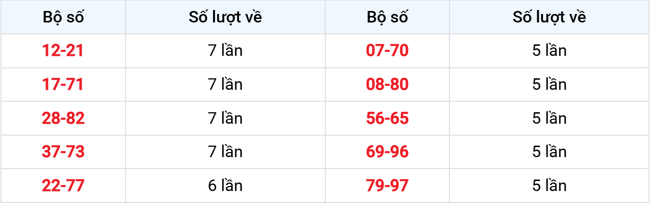 Các cặp lô về ít nhất từ 24-12-2025 đến 30-12-2025