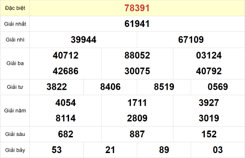 – Giải đặc biệt: 91