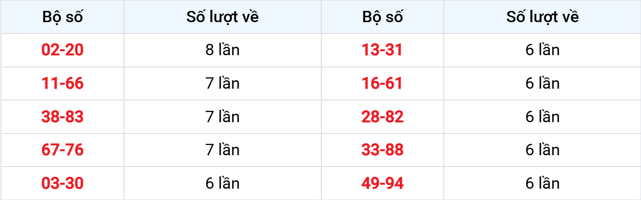 – Cặp lô về cùng nhau: 02-20, 09-90