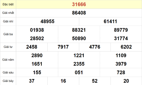– Giải đặc biệt: 66