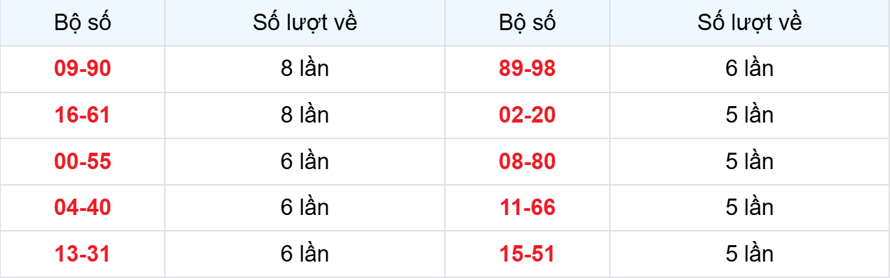 – Lô kép xuất hiện: 55 99